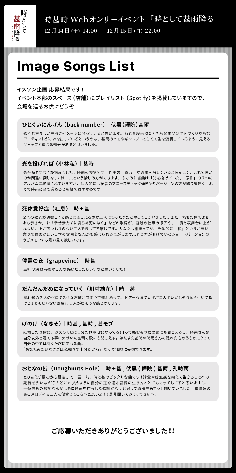 | Tag: #甚時週間 #再放送 | CP: 甚時 | Author: まちこ | |